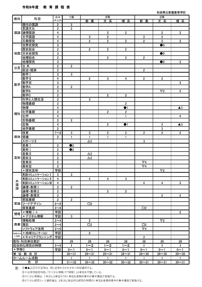 | 昭和59年 4月19日 | 秋田県教育委員会により「教育課程」の研究指定校の委嘱を受ける(~61.11.5)研究主題「特色ある学校づくりを目指した教育課程の編成とその実践」-普通科における類型別の在り方とそのもたらす効果及び問題をめぐって- |