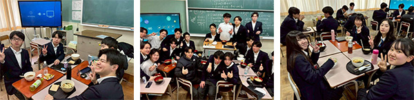新屋高校同窓会と新高学食のコラボ企画である「同窓会うどん ごちプロジェクト」卒業を控えた3年生に提供していただきました!この日のお昼は3年生の笑顔であふれていました!同窓会の皆様、ありがとうございました!
