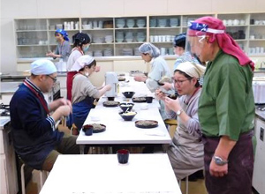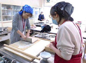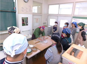 11月27日(土)本校調理室において、学校後援会前会長の武藤真作さんを講師に迎え 、PTA研修「そば打ち体験」を開催しました。本校PTAの恒例となっている本研修ですが、昨年度はコロナウイルス感染症の影響のため、残念ながら開催を中止せざるをえませんでした。今年度は参加人数を制限し(今回の参加者は12名でした)、参加者の方には検温・消毒の徹底をお願いした上での開催となりました。