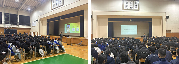 冬季オリンピックや世界選手権で活躍された秋田のスーパースター小林範仁さんを講師に迎え、キャリア講演会を開催しました。大舞台での活躍シーンを映像で紹介し、これまでの取組を紹介していただきました。また、3つの重要な視点(①ルールを守る、②常に全力で!、③感謝の気持ちを大切に!)を紹介していただいた上で、全県総体に向けてのエールをいただきました。講師を引き受けていただいた小林さん、ありがとうございました!